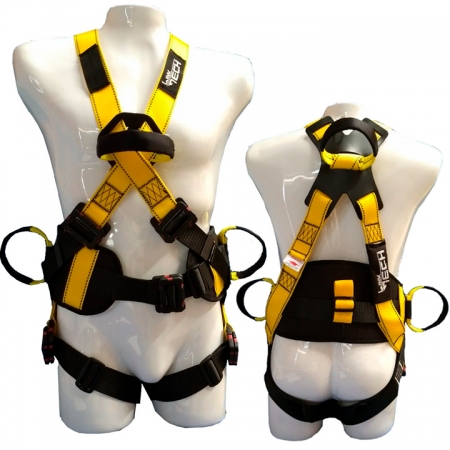 Arnés dieléctrico de cuatro (4) puntos de conexión especial para trabajos de posicionamiento, detención, restricción, ascenso y descenso controlado. Capacidad máxima de 140kg (310lbs) incluyendo ropa, calzado y cualquier otra herramienta de trabajo.