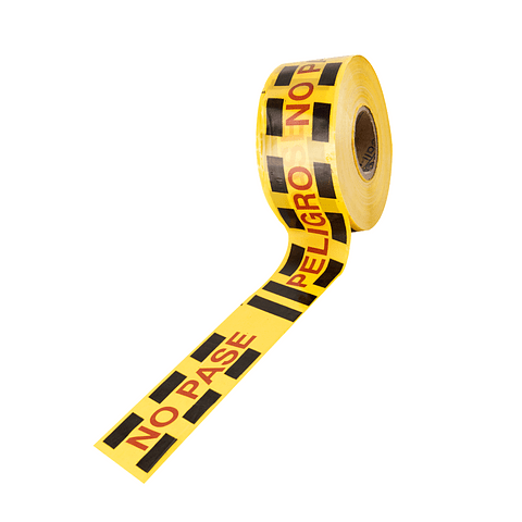 Texto: Bandas color negro y texto rojo: «PELIGRO NO PASE»
