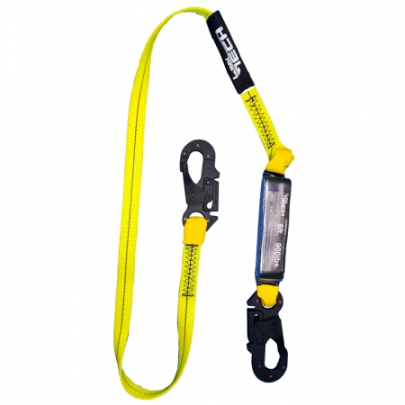 Eslinga para detención de caídas en reata con sistema de absorción de energía para disipar la fuerza de impacto sobre el usuario, reduciendo a menos de 900 lbs para caídas factor 1.