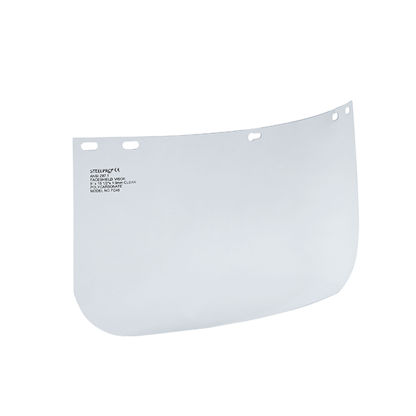 • Visor en lámina de policarbonato flexible claro, con perforaciones para adaptar a casquetes STEELPRO.